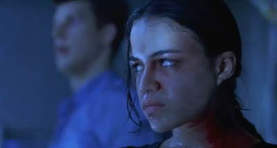 Another heavy influence on Anderson for this film was probably Aliens (1986), felt via the concept of a special forces team and a solitary heroine who survives the struggle against an army of creatures (not to mention going up against a “queen”). Anderson even has his own "Vasquez" played by the great Michelle Rodriguez, she is often seen playing a tough badass action girl in a secondary role and this movie basically gave her that image (even more so than Girlfight), a kind of double edged sword because it made her relevant in Hollywood but it also kept her away from starring in her own vehicle like other action stars and was only relegated to supporting roles for most of her career. She is quite good in the film and has a lot of the more awesome moments of action, even upstaging Milla in a few scenes.